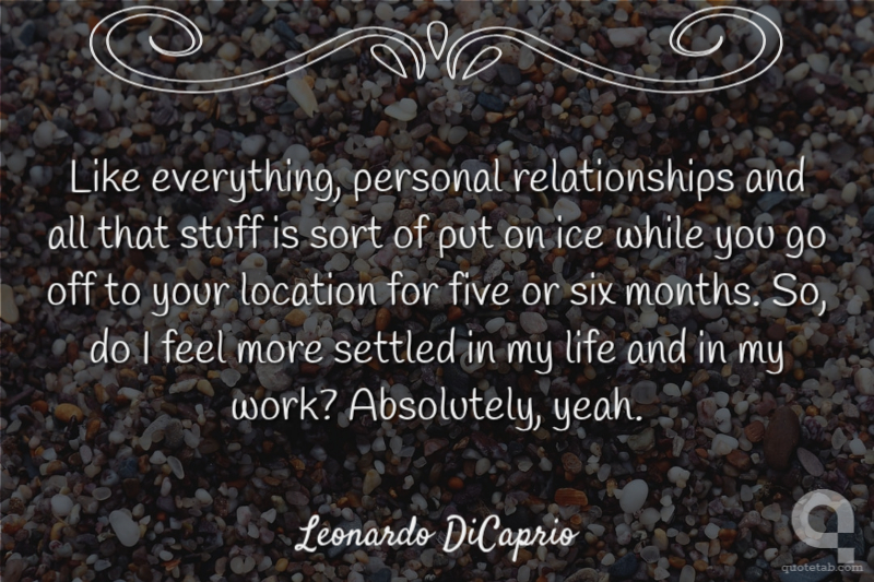 Like everything, personal relationships and all that stuff is sort of put on ice while you go off to your location for five or six months. So, do I feel more settled in my life and in my work? Absolutely, yeah.