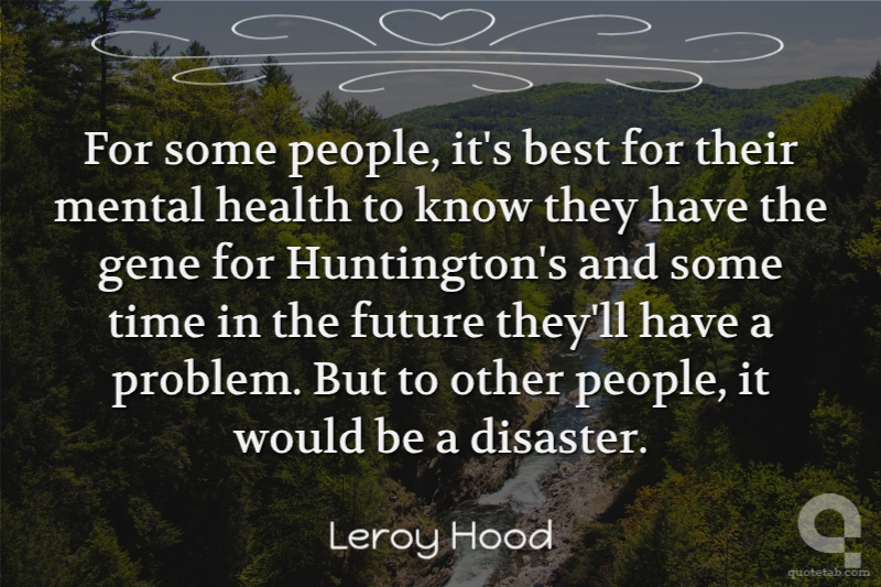 For some people, it's best for their mental health to know they have the gene for Huntington's and some time in the future they'll have a problem. But to other people, it would be a disaster.