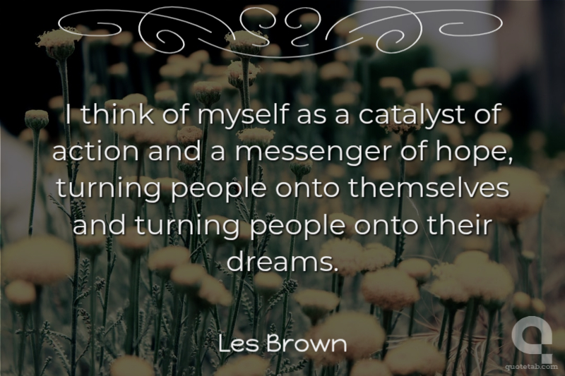 I think of myself as a catalyst of action and a messenger of hope, turning people onto themselves and turning people onto their dreams.