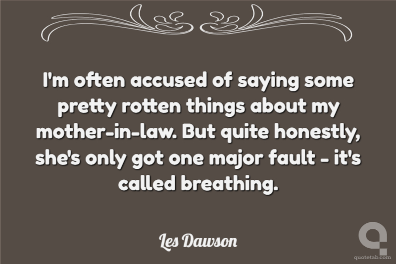 I'm often accused of saying some pretty rotten things about my mother-in-law. But quite honestly, she's only got one major fault - it's called breathing.