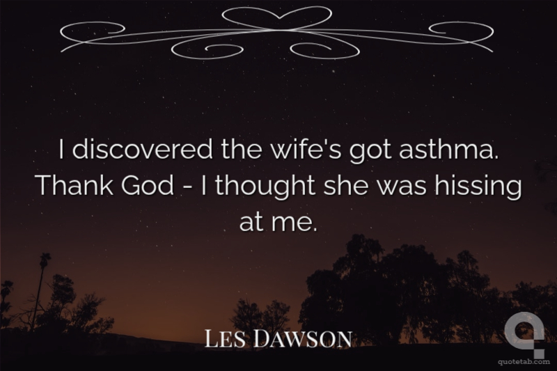 I discovered the wife's got asthma. Thank God - I thought she was hissing at me.