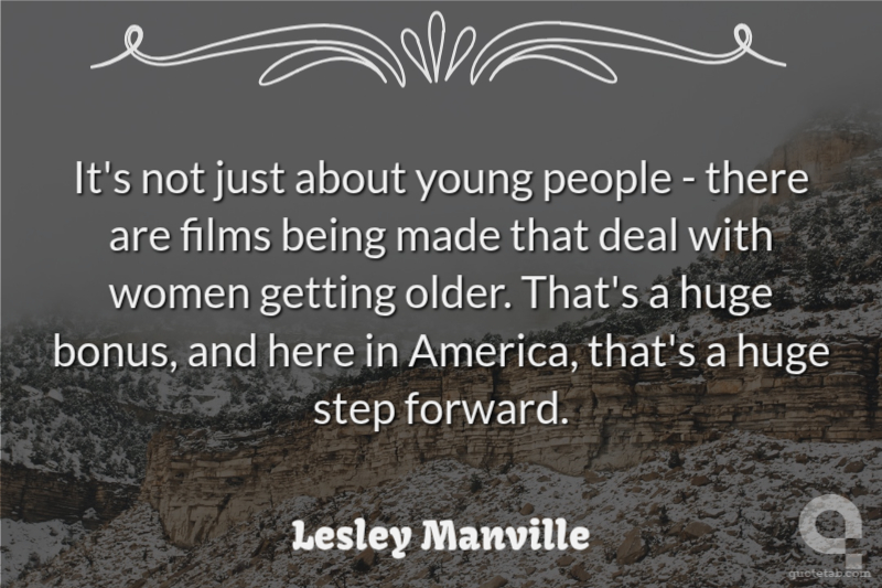 It's not just about young people - there are films being made that deal with women getting older. That's a huge bonus, and here in America, that's a huge step forward.