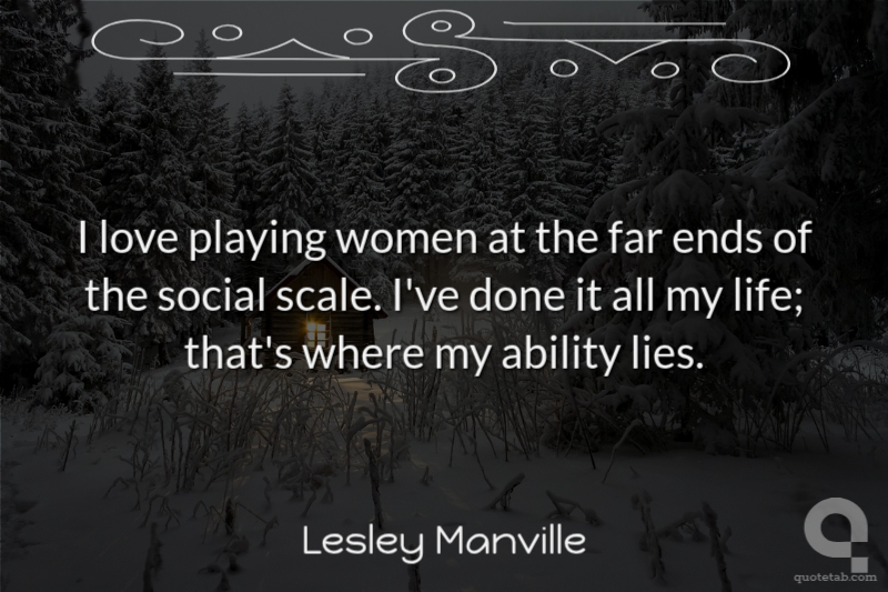 I love playing women at the far ends of the social scale. I've done it all my life; that's where my ability lies.