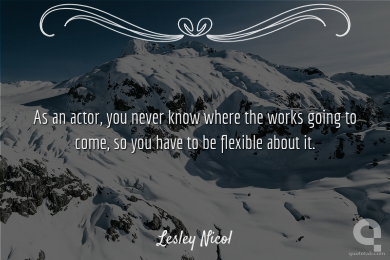 As an actor, you never know where the works going to come, so you have to be flexible about it.