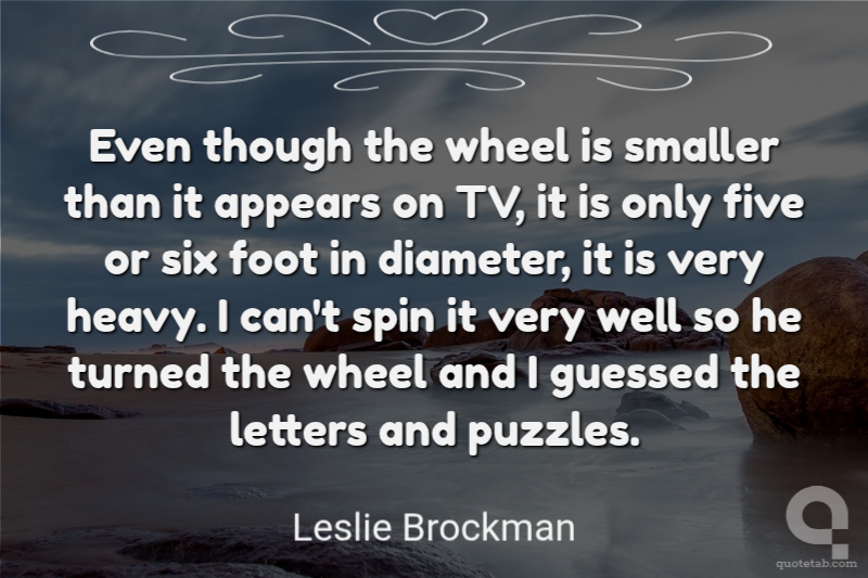 Even though the wheel is smaller than it appears on TV, it is only five or six foot in diameter, it is very heavy. I can't spin it very well so he turned the wheel and I guessed the letters and puzzles.