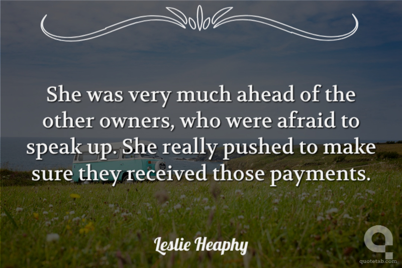 She was very much ahead of the other owners, who were afraid to speak up. She really pushed to make sure they received those payments.