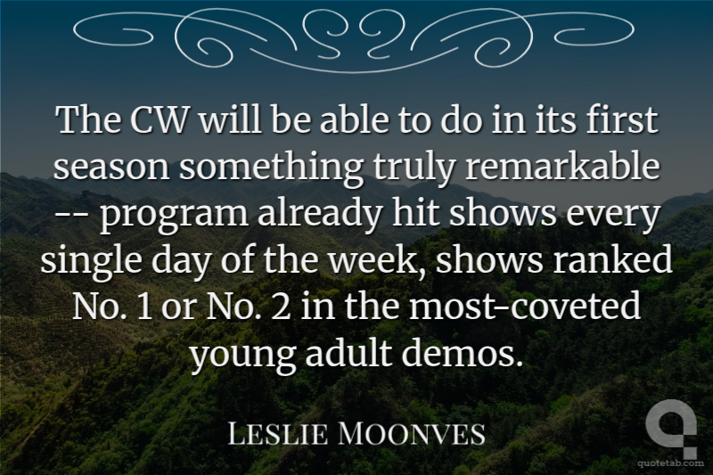 The CW will be able to do in its first season something truly remarkable -- program already hit shows every single day of the week, shows ranked No. 1 or No. 2 in the most-coveted young adult demos.