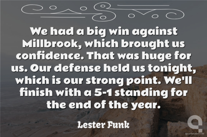 We had a big win against Millbrook, which brought us confidence. That was huge for us. Our defense held us tonight, which is our strong point. We'll finish with a 5-1 standing for the end of the year.