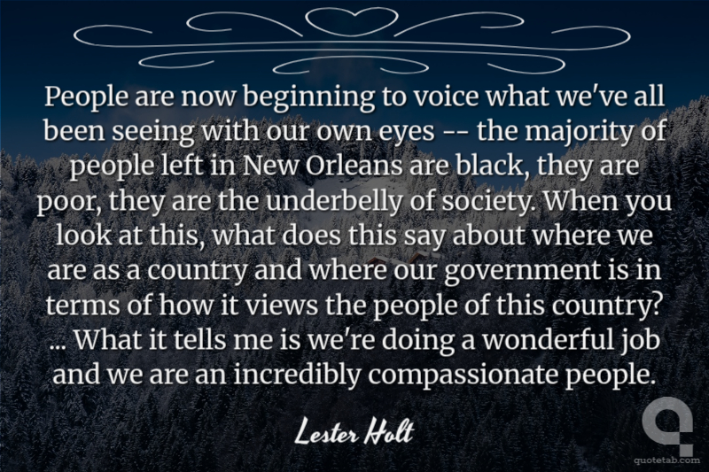 People are now beginning to voice what we've all been seeing with our own eyes -- the majority of people left in New Orleans are black, they are poor, they are the underbelly of society. When you look at this, what does this say about where we are as a country and where our government is in terms of how it views the people of this country? ... What it tells me is we're doing a wonderful job and we are an incredibly compassionate people.