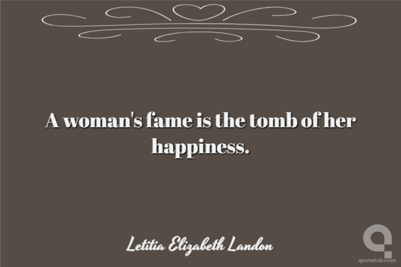 A woman's fame is the tomb of her happiness.
