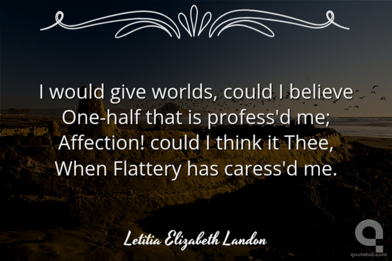 I would give worlds, could I believe One-half that is profess'd me; Affection! could I think it Thee, When Flattery has caress'd me.