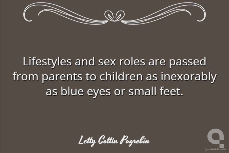 Lifestyles and sex roles are passed from parents to children as inexorably as blue eyes or small feet.