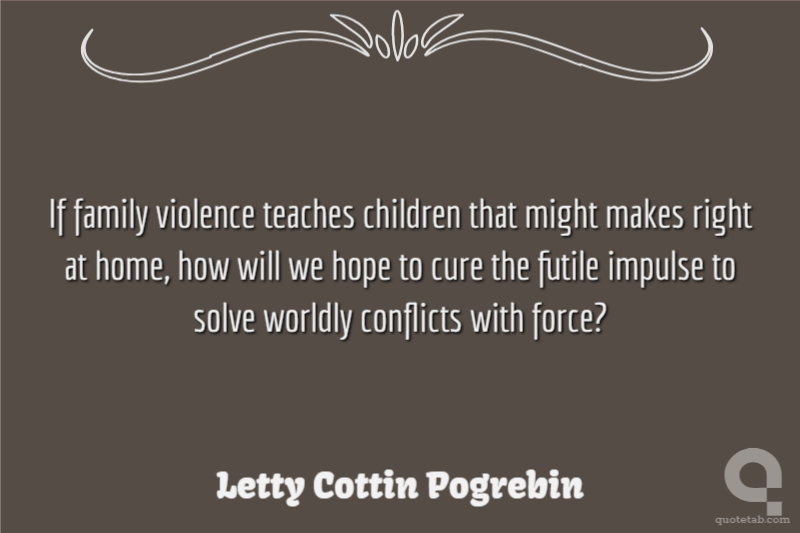 If family violence teaches children that might makes right at home, how will we hope to cure the futile impulse to solve worldly conflicts with force?