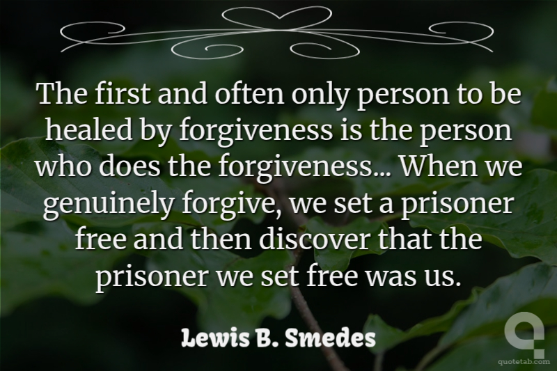 The first and often only person to be healed by forgiveness is the person who does the forgiveness... When we genuinely forgive, we set a prisoner free and then discover that the prisoner we set free was us.