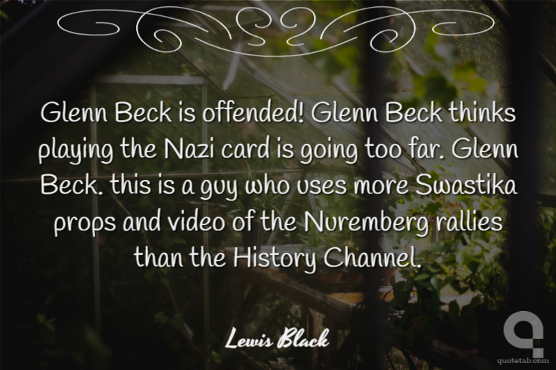 Glenn Beck is offended! Glenn Beck thinks playing the Nazi card is going too far. Glenn Beck. this is a guy who uses more Swastika props and video of the Nuremberg rallies than the History Channel.