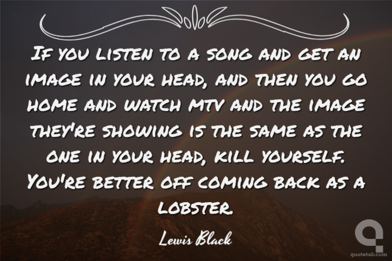 If you listen to a song and get an image in your head, and then you go home and watch mtv and the image they're showing is the same as the one in your head, kill yourself. You're better off coming back as a lobster.