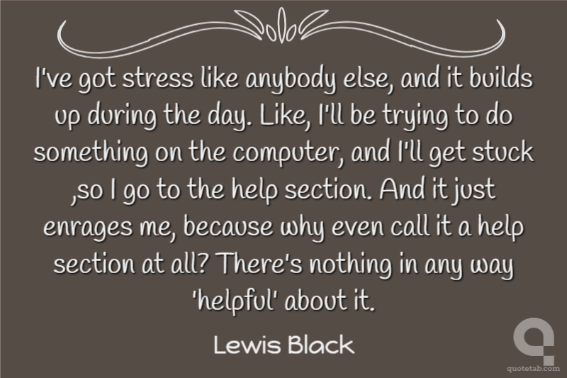 I've got stress like anybody else, and it builds up during the day. Like, I'll be trying to do something on the computer, and I'll get stuck ,so I go to the help section. And it just enrages me, because why even call it a help section at all? There's nothing in any way 'helpful' about it.