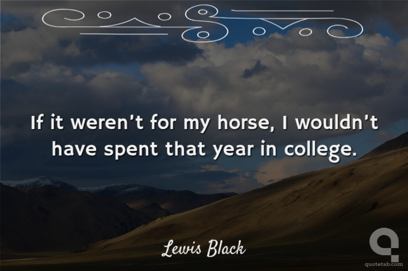 When from behind me, a young woman of 25 uttered the following, it was the dumbest thing I have ever heard in my life until Dan Quayle was elected Vice President of the United States. She said, if it weren't for my horse, I wouldn't have spent that year in college.