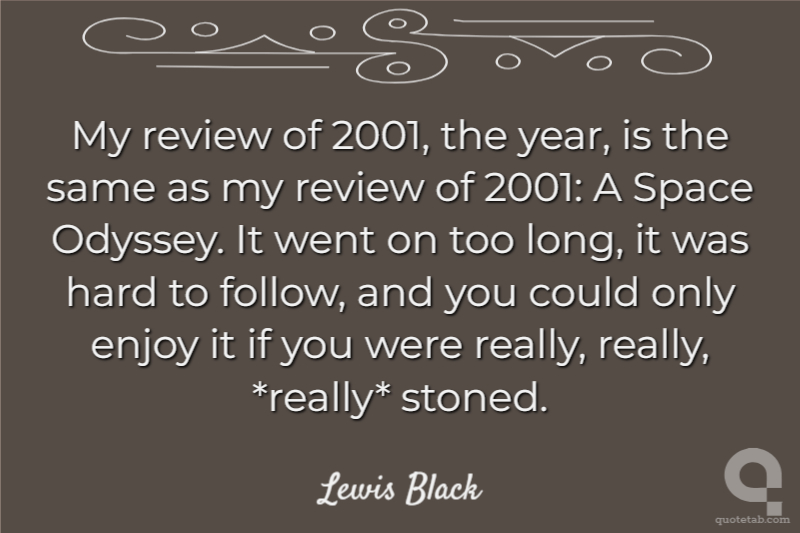 My review of 2001, the year, is the same as my review of 2001: A Space Odyssey. It went on too long, it was hard to follow, and you could only enjoy it if you were really, really, *really* stoned.