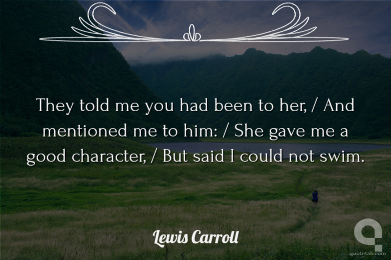 They told me you had been to her, / And mentioned me to him: / She gave me a good character, / But said I could not swim.