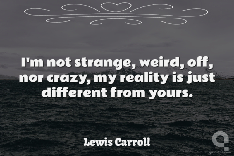 I'm not strange, weird, off, nor crazy, my reality is just different from yours.