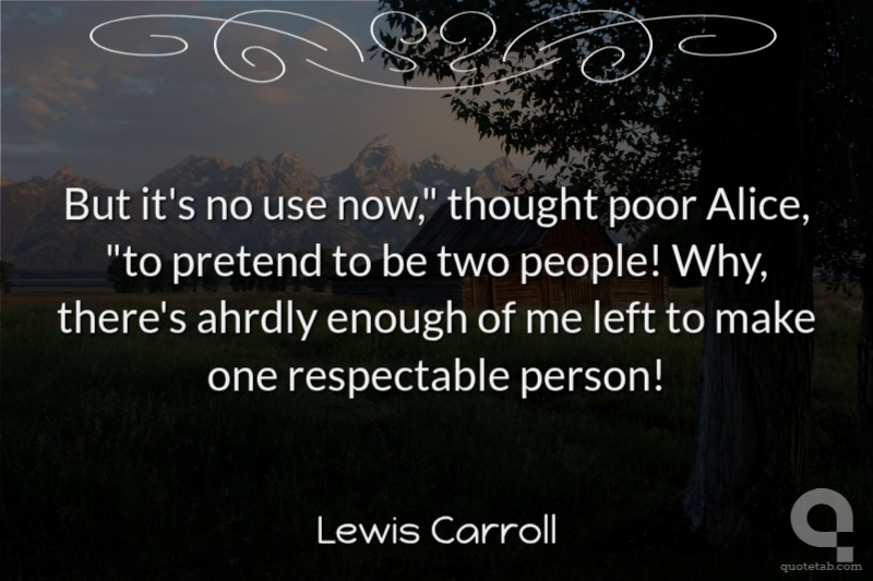But it's no use now," thought poor Alice, "to pretend to be two people! Why, there's ahrdly enough of me left to make one respectable person!