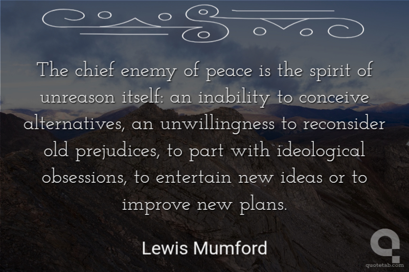 The chief enemy of peace is the spirit of unreason itself: an inability to conceive alternatives, an unwillingness to reconsider old prejudices, to part with ideological obsessions, to entertain new ideas or to improve new plans.