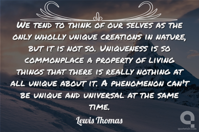 We tend to think of our selves as the only wholly unique creations in nature, but it is not so. Uniqueness is so commonplace a property of living things that there is really nothing at all unique about it. A phenomenon can't be unique and universal at the same time.