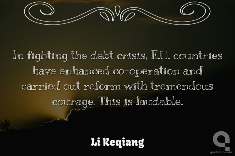 In fighting the debt crisis, E.U. countries have enhanced co-operation and carried out reform with tremendous courage. This is laudable.