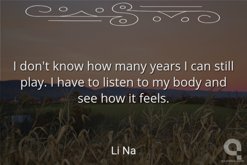 I don't know how many years I can still play. I have to listen to my body and see how it feels.