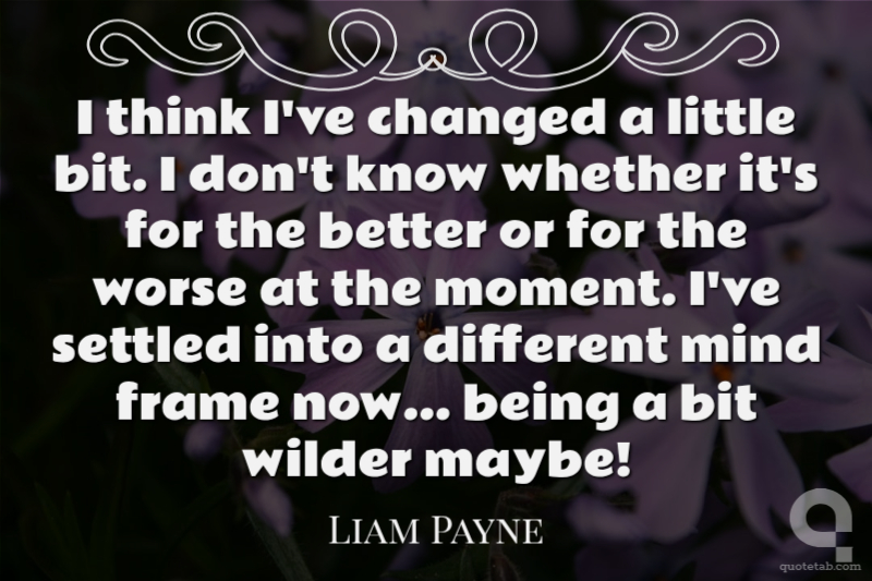 I think I've changed a little bit. I don't know whether it's for the better or for the worse at the moment. I've settled into a different mind frame now... being a bit wilder maybe!