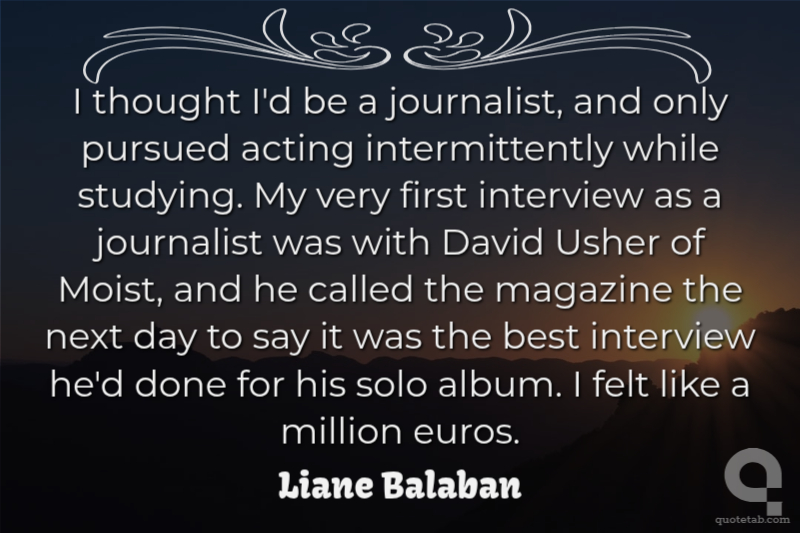 I thought I'd be a journalist, and only pursued acting intermittently while studying. My very first interview as a journalist was with David Usher of Moist, and he called the magazine the next day to say it was the best interview he'd done for his solo album. I felt like a million euros.
