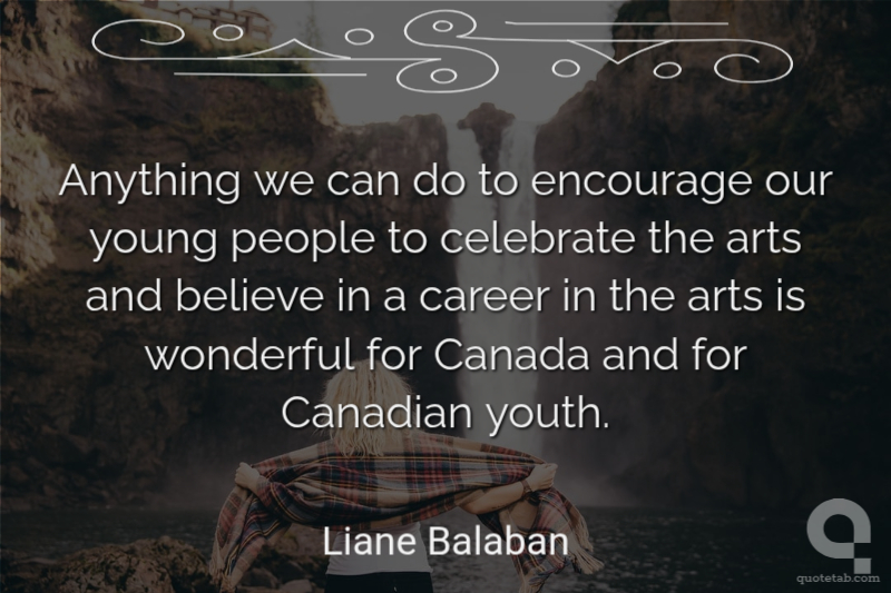 Anything we can do to encourage our young people to celebrate the arts and believe in a career in the arts is wonderful for Canada and for Canadian youth.
