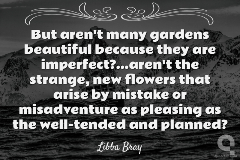 But aren't many gardens beautiful because they are imperfect?...aren't the strange, new flowers that arise by mistake or misadventure as pleasing as the well-tended and planned?