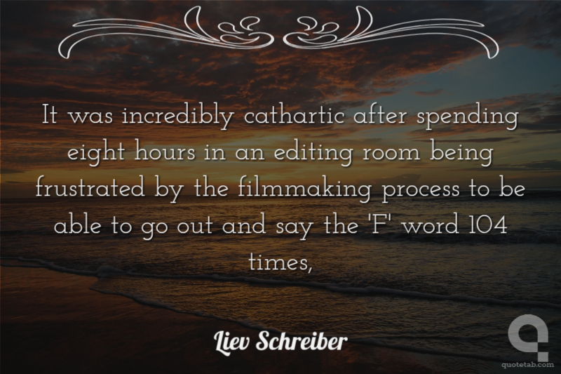 It was incredibly cathartic after spending eight hours in an editing room being frustrated by the filmmaking process to be able to go out and say the 'F' word 104 times,