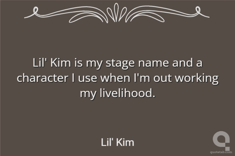 Lil' Kim is my stage name and a character I use when I'm out working my livelihood.