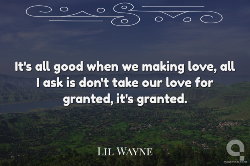 It's all good when we making love, all I ask is don't take our love for granted, it's granted.