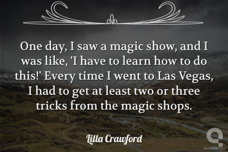 One day, I saw a magic show, and I was like, 'I have to learn how to do this!' Every time I went to Las Vegas, I had to get at least two or three tricks from the magic shops.