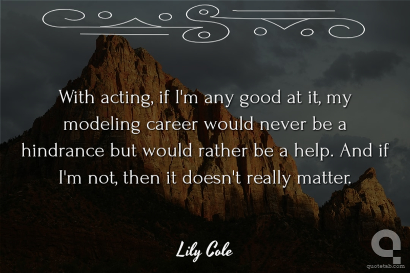 With acting, if I'm any good at it, my modeling career would never be a hindrance but would rather be a help. And if I'm not, then it doesn't really matter.