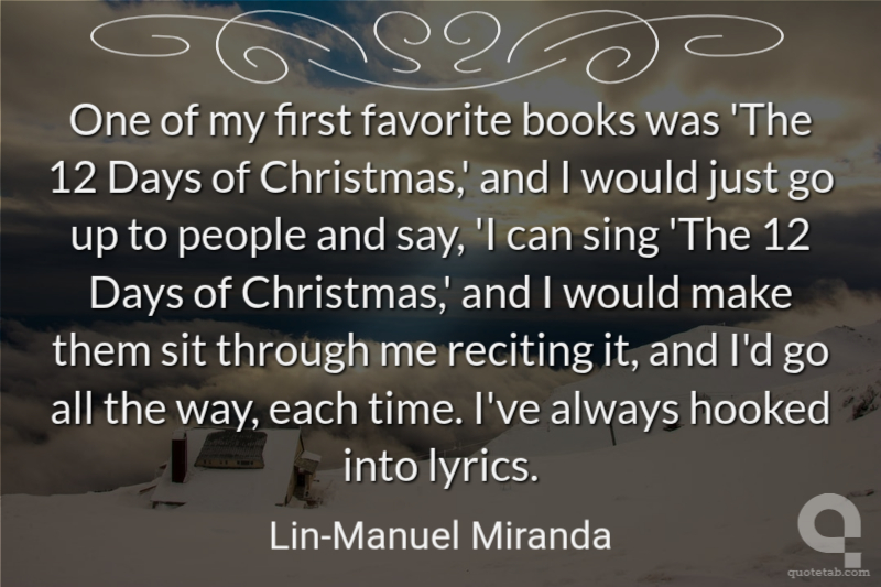One of my first favorite books was 'The 12 Days of Christmas,' and I would just go up to people and say, 'I can sing 'The 12 Days of Christmas,' and I would make them sit through me reciting it, and I'd go all the way, each time. I've always hooked into lyrics.