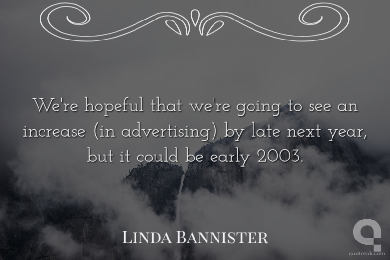 We're hopeful that we're going to see an increase (in advertising) by late next year, but it could be early 2003.