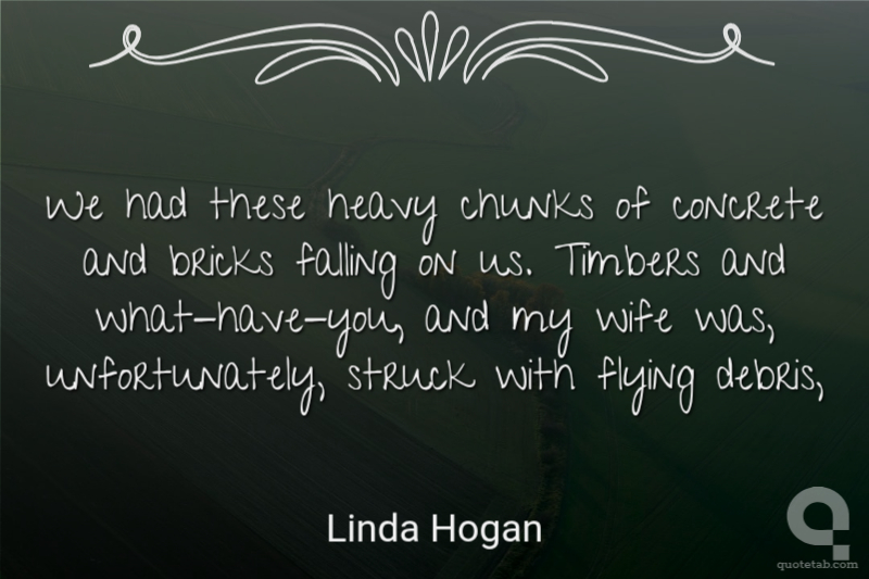 We had these heavy chunks of concrete and bricks falling on us. Timbers and what-have-you, and my wife was, unfortunately, struck with flying debris,