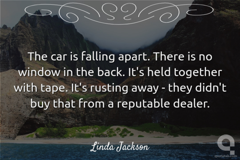 The car is falling apart. There is no window in the back. It's held together with tape. It's rusting away - they didn't buy that from a reputable dealer.