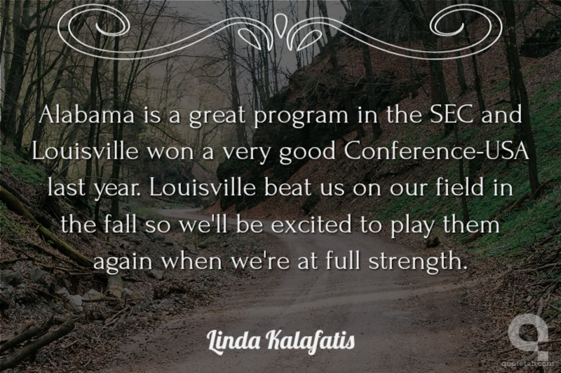 Alabama is a great program in the SEC and Louisville won a very good Conference-USA last year. Louisville beat us on our field in the fall so we'll be excited to play them again when we're at full strength.