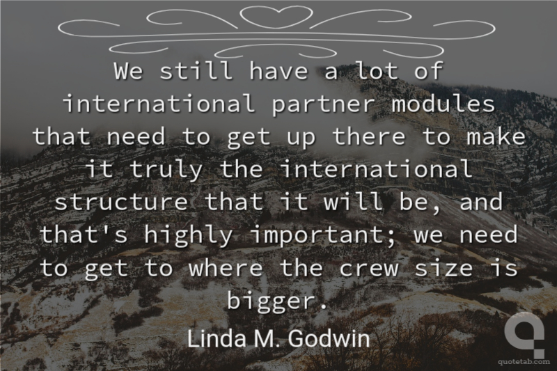 We still have a lot of international partner modules that need to get up there to make it truly the international structure that it will be, and that's highly important; we need to get to where the crew size is bigger.