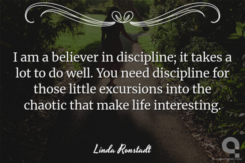 I am a believer in discipline; it takes a lot to do well. You need discipline for those little excursions into the chaotic that make life interesting.