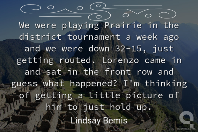 We were playing Prairie in the district tournament a week ago and we were down 32-15, just getting routed. Lorenzo came in and sat in the front row and guess what happened? I'm thinking of getting a little picture of him to just hold up.