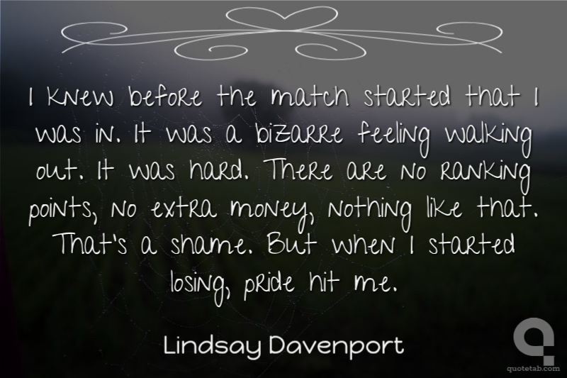 I knew before the match started that I was in. It was a bizarre feeling walking out. It was hard. There are no ranking points, no extra money, nothing like that. That's a shame. But when I started losing, pride hit me.