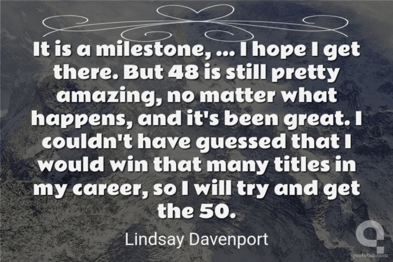 It is a milestone, ... I hope I get there. But 48 is still pretty amazing, no matter what happens, and it's been great. I couldn't have guessed that I would win that many titles in my career, so I will try and get the 50.