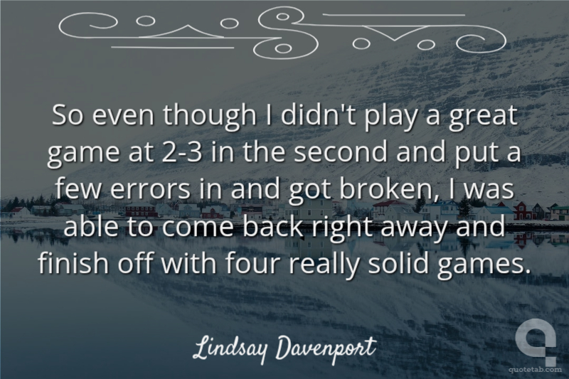 So even though I didn't play a great game at 2-3 in the second and put a few errors in and got broken, I was able to come back right away and finish off with four really solid games.